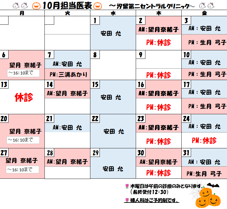 ピル継続処方をご希望の方は、空欄以外の日程でご来院いただきますよう